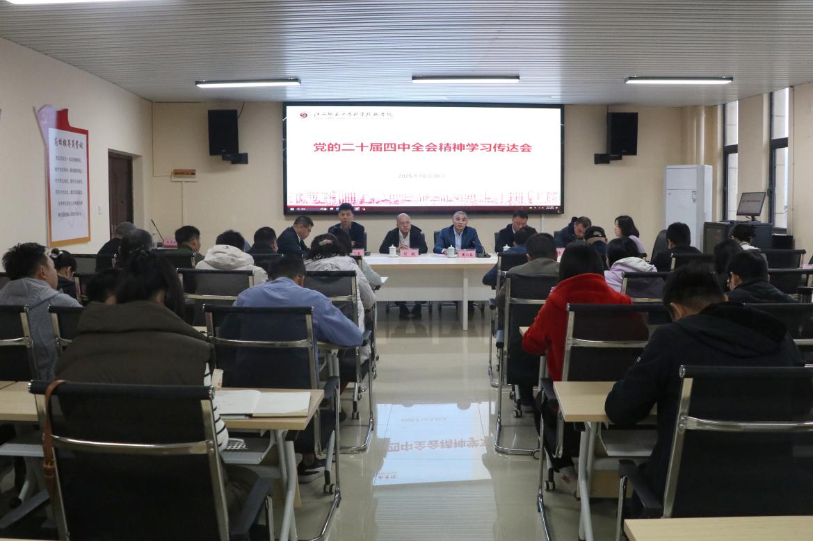 10月30日上午,科技学院召开专题会议,传达党的二十届四中全会精神,对全院学习宣传贯彻工作进行动员部署。科技学院党政班子成员出席会议,各单位、各部门党政主要负责人和机关各党支部书记参加。