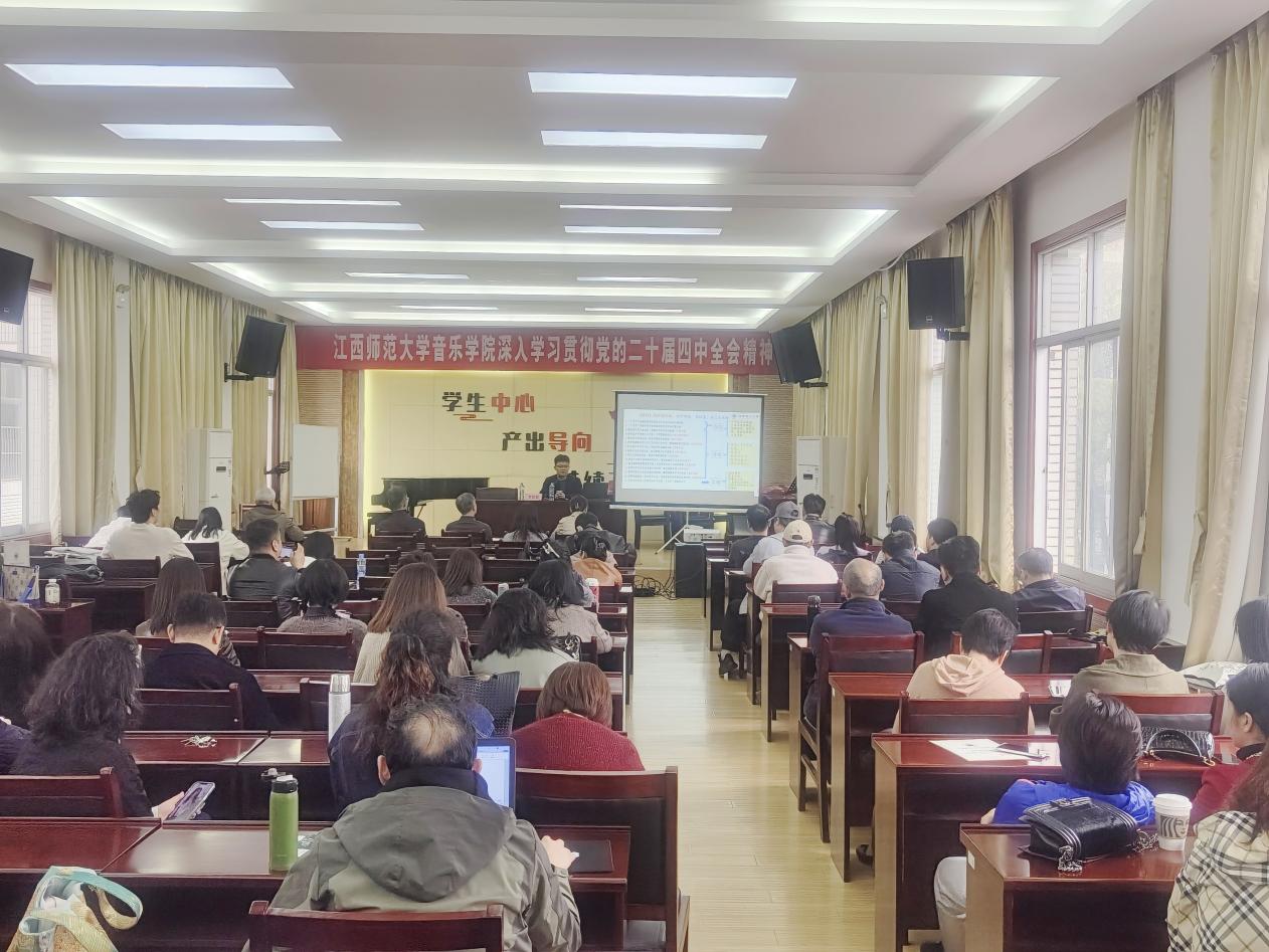为学习好、宣传好、贯彻好党的二十届四中全会精神,11月11日下午,音乐学院召开全院教职工大会,专题学习贯彻党的二十届四中全会精神,邀请学校学习贯彻党的二十届四中全会精神宣讲团成员、马克思主义学院副院长黄徐强作专题宣讲报告,全院教职工参加会议。