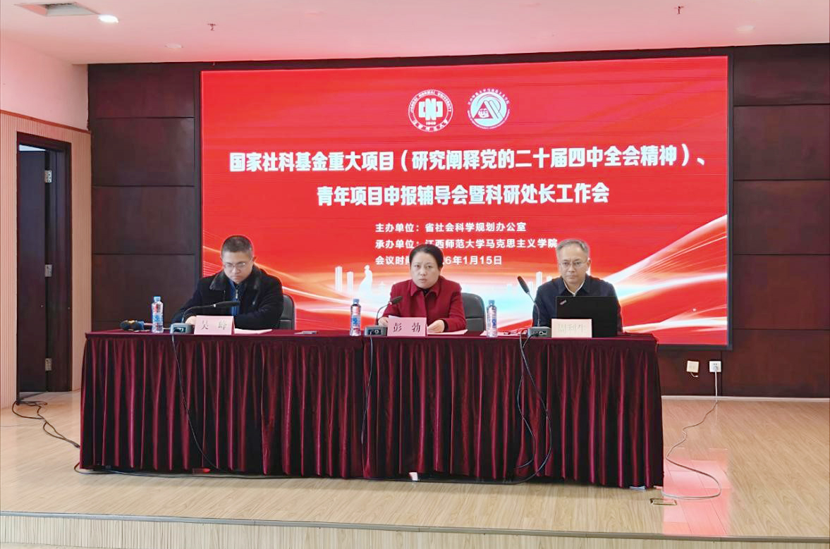 近日,江西省国家社科基金重大项目(研究阐释党的二十届四中全会精神)、青年项目申报辅导会暨科研处长工作会在我校召开。本次会议由省社会科学规划办公室主办、我校马克思主义学院承办,省社科联党组成员、副主席彭勃出席并致辞,校党委常委、副校长周利生,省内多所高校科研管理部门负责人、项目申报骨干及相关工作人员共200余人参加。